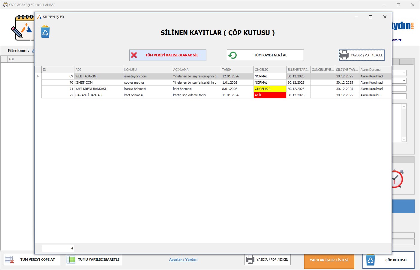 Yardım Sayfası Altyapı değişikliği nedeni ile kaldırıldırılacak.